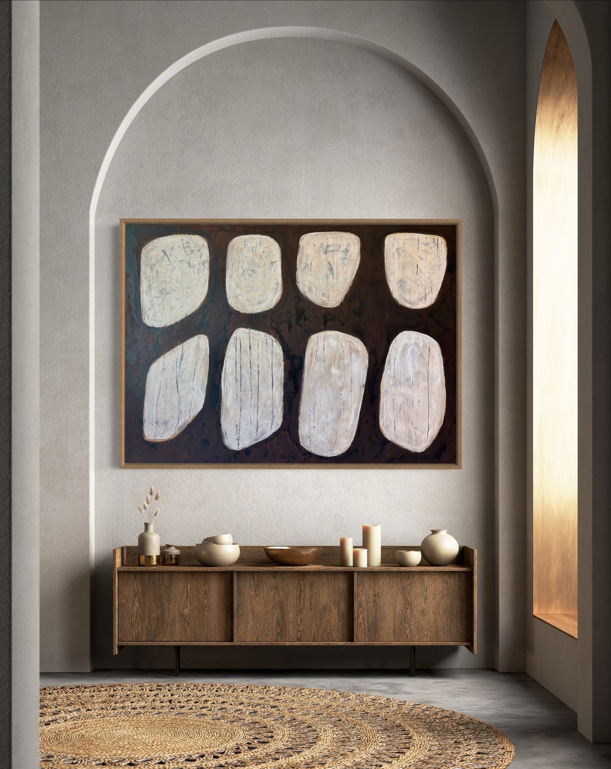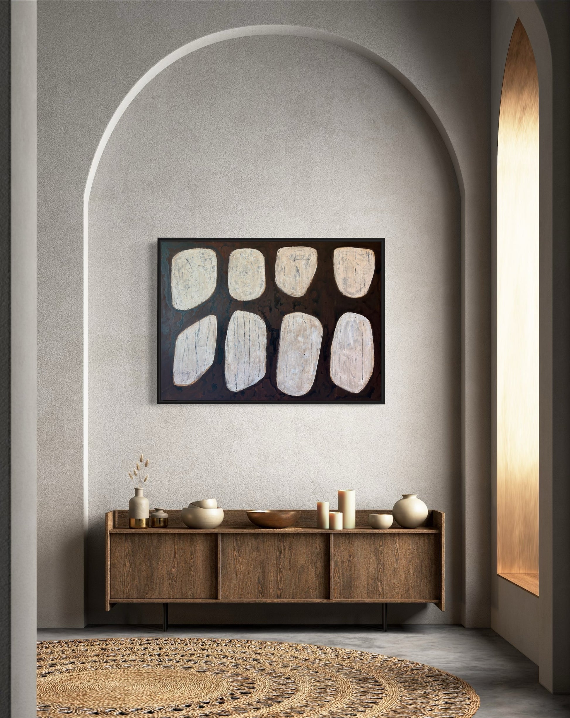 With its balance of earthy depth and muted light, the softened shapes evokes the quiet presence of stones in nature - grounded, enduring and subtly transformed over time by their environment.