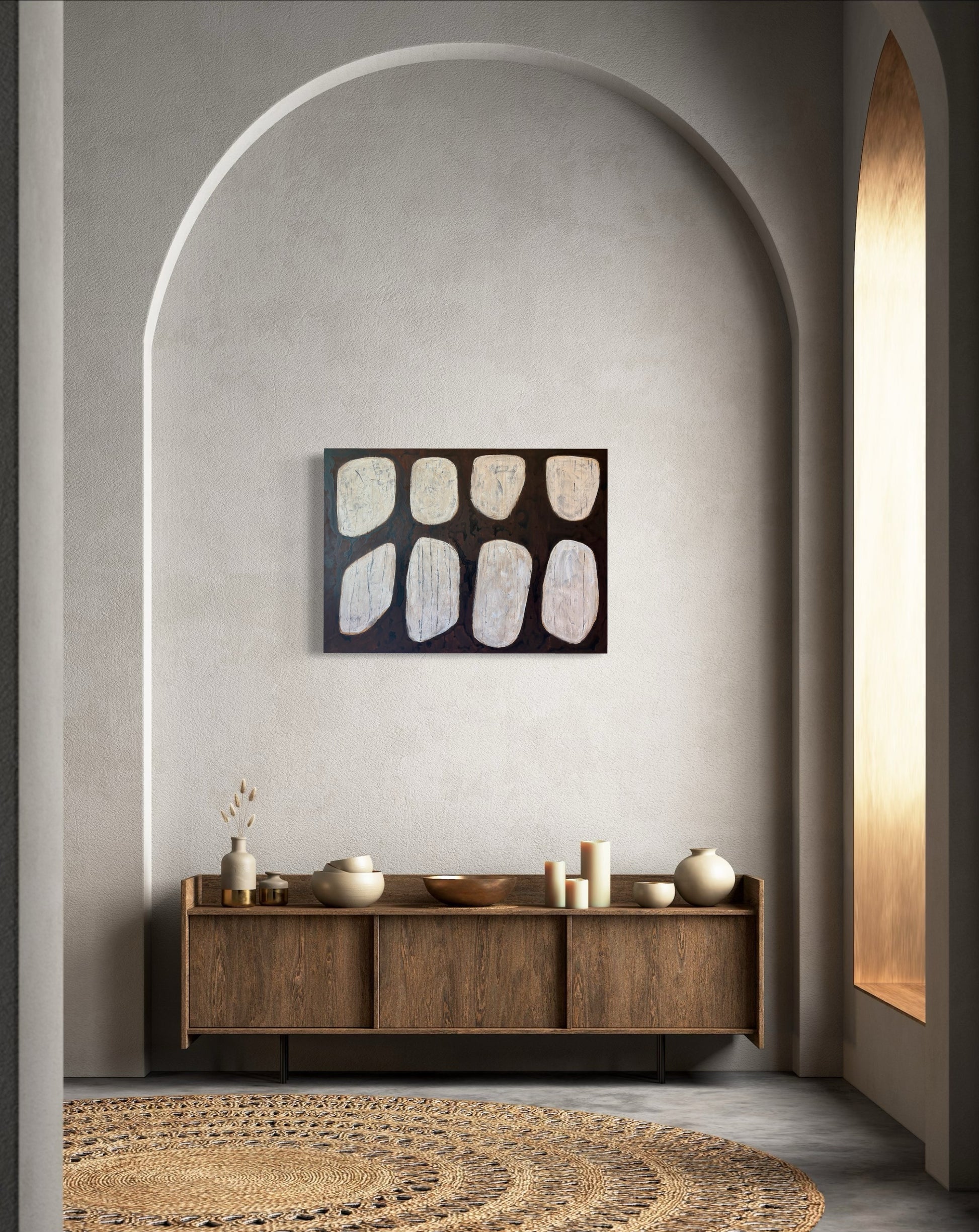 “Ancient Echoes” This painting captures the organic beauty of imperfection through layered texture and contrast.